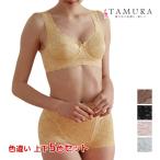 補正下着 上下同色3組セット ノンワイヤーブラジャー&ショーツ 上下セット 総レース 多機能 日本製 ブラ 50代 深履きパンツ タムラ TAMURA