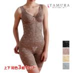 同色3枚セット ボディスーツ 多機能シリーズ 花柄パワーネット 補正下着 綿混 日本製 ガードル ガードルスーツ 引き締め タムラ TAMURA