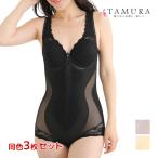 同色3枚セット ボディスーツ 多機能シリーズ シルキーボディシェイプ 補正下着 日本製 タムラ TAMURA セット ヒップアップ 薄手 背中の肉