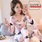 ゆっ ルームウエア 上下セット ナイトウェア 伸縮性あり 薄手 秋冬 レディース 10分丈 長袖 インナーセット 2点20%off★シルク