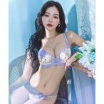 ブラジャー ショーツセット ルミナス ペタル エンブロイダリー ブラジャー & バック透け Tバック ショーツ セット