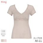 ウイング 綿100% メッシュタイプ カップ付きインナー ふかめVネック 3分袖(M L LL)EL6386【メール便15】