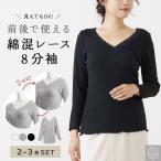 2枚セット 2way リブ インナー レース Vネック 8分袖 レディース 綿混 年間 ストレッチ 長袖 重ね着 下着 肌着 婦人 K5762K-R
