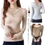 トップス レース Vネック 長袖 クールネック レディース きれいめ Tシャツ インナーシャツ 春 秋 冬 薄手 シンプル 可愛い おしゃれ カジュア