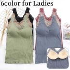 レースキャミソール タンクトップ カップ付き レディース インナー レース Vネック 見せるインナー トップス おしゃれ パッド付き 重ね着 下着