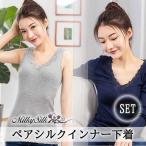 Vネックキャミソール+ロングインナー お得な2枚セット 高級シルク 長袖シルクインナー + シルクキャミソール