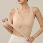 ソリッドカラー Vネック カップ付き ノースリーブ インナー 女性 レディース トップス ブラトップ タンクトップ 下着 肌着 秋 冬 一体