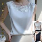 タンクトップ シルク レースネック サテン レース キャミソール レディース インナー vネック ブラウス シャツ ノースリーブ トップス