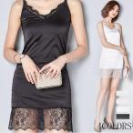 ペチコート サテン ロング キャミ スリップ レース vネック インナー ロングキャミ 透け防止 ベージュ 調節 大きいサイズ 新作