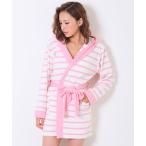 パジャマ ルームウェア パイルボーダー ガウン レディース