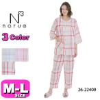 ナルエー narue パジャマ 26-12408 女性用 レディース ルームウェア セットアップ シャーリングダブルガーゼラインチェックセットアップ 7分袖 9分丈 かぶりタ