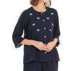 ナルエー Narue ダブルガーゼムジリボンペプラム7分袖パジャマ (ネイビー)