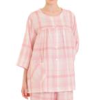 ナルエー Narue ダブルガーゼマドラスチェック7分袖パジャマ (ピンク)