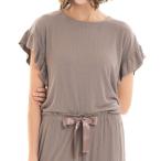 ナルエー Narue 接触冷感リブニットフリルパジャマ (ブラウン)