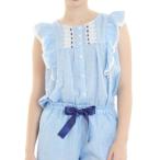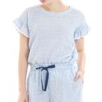 ナルエー Narue シャーリング表ジャガードストライプ&シャンブレーフリルパジャマ (ブルー)