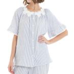 ナルエー Narue コットンダブルガーゼストライプレーシーパジャマ (ネイビー)