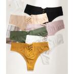 ショーツ 「6枚セット」 ソリッドカラー レースアップ Tバック ハイレグ ショーツ