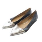 アルマーニ ジーンズ ARMANI JEANS パンプス 38 24cm シルバーカラー 銀色 黒 ブラック ポインテッドトゥ /RI ■OS レディース