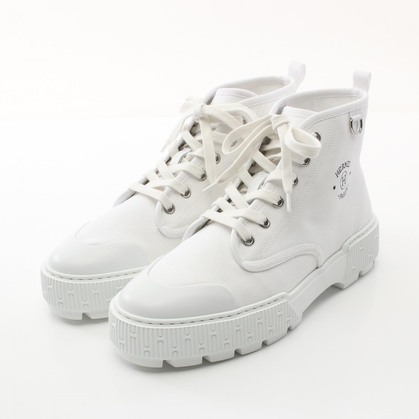 ◆全品5%OFFクーポン対象◆エルメス HERMES ゲット プリュノワール スニーカー 靴 キャンバス レザー レディース ホワイト系 / ブラック系 【中古】