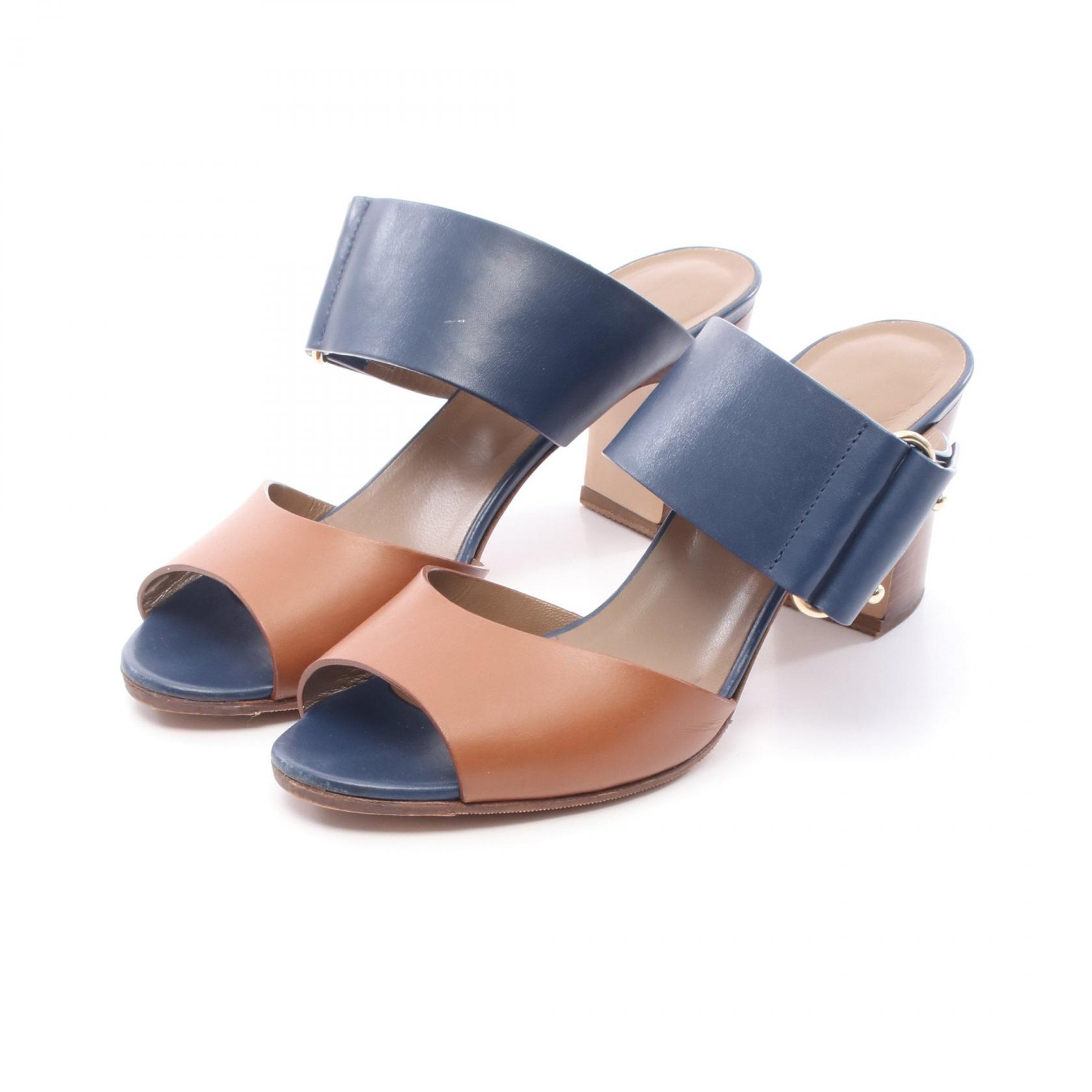 ◆全品5%OFFクーポン対象◆エルメス HERMES サンダル 靴 レザー レディース ブラウン系 / ネイビー系 【中古】