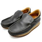 【中古】美品 HERMES エルメス レザー モカシン デッキシューズ ローファー サイズ39 25cm ブラック メンズ Luxs ブランド古着のリュクス