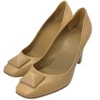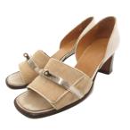 美品 HERMES エルメス スエード×レザー パンプス シューズ レディース カーキグリーン 36