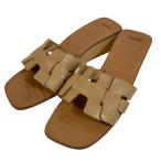 エルメス HERMES サンダル シューズ Hモチーフ レザー ウッドソール 36 23.0cm ベージュ 0828 IBO79 レディース