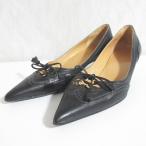 HERMES エルメス レースアップ レザー ポインテッドトゥ パンプス 36 約23cm ブラック レディース 古着 中古