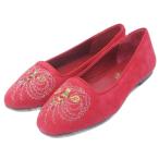 エルメス HERMES フラットシューズ スエード レザー 刺繍 パンプス 36 約23cm 赤 レッド IBO87 ☆AA★ 0411 レディース