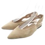 エルメス HERMES ジーナ フラットシューズ サンダル スエード ポインテッドトゥ ストラップ 37.5 24.5cm ベージュ