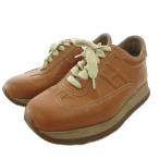 エルメス HERMES Quick クイック スニーカー Hロゴ レザー 牛革 ローカット 35.5 茶 ブラウン ■MNK3 レディース