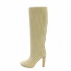 エルメス HERMES ロングブーツ キャンバス レザー 総柄 H総柄 ロゴ チャンキーヒール 37 24cm ベージュ ■GY18 /MQ レディース