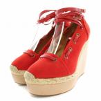 エルメス サンダル エスパドリーユ ウエッジソール ウッドソール アンクルストラップ レースアップ 36 23.0cm 赤 ベージュ レディース