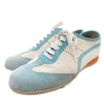 エルメス HERMES クイック レザースエードスニーカー シューズ 37 ライトブルー 白 ホワイト /YJ ■GY62 レディース