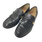良品□GUCCI グッチ 673817 レザー GGスプリーム タッセルローファー モカシン フラットシューズ ブラック 6 イタリア製 メンズオススメ