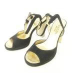 グッチ GUCCI ストラップ サンダル ハイヒール スエード EU34 黒 ブラック レディース