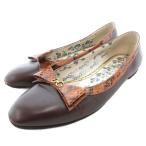 グッチ GUCCI フラットパンプス バレエシューズ レザー ロゴ リボン 39 25.5cm 茶 ブラウン /JS ■GY11 レディース