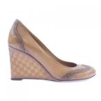 グッチ GUCCI シマ ウェッジヒール パンプス GG柄 ラウンドトゥ 茶 ブラウン 約24.5cm IBO83 1112 レディース