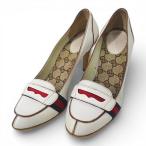 グッチ GUCCI ヒールローファー シェリーライン 37.5 ホワイト 白 レザー イタリア製 レディース