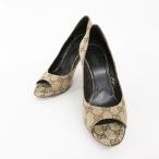 グッチ GUCCI パンプス オープントゥ バンブー ハイヒール GG柄 ブラウン 茶 36 1/2 ☆AA★ レディース