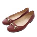 グッチ GUCCI パンプス フラット レザー ラウンドトゥ ローヒール ホースビット ゴールド金具 37.5 24.5cm 赤 レッド