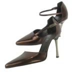 グッチ GUCCI パンプス レザー 本革 35 22.0cm ブロンズカラー マルーン ポインテッドトゥ ピンヒール 0150 /CK37 ■GY11 レディース