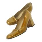 グッチ GUCCI パンプス レザー 本革 34.5 21.5cm ゴールドカラー 金色 エナメル ホースビット スクエアトゥ チャンキーヒール 2296