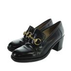 グッチ GUCCI ローファー ラウンドトゥ チャンキーヒール レザー ホースビット 100 0356 35.5 22.5cm 黒 ブラック ■GY35 /MQ ■OH