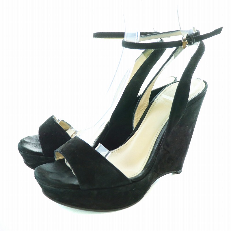 【中古】ジルサンダー JIL SANDER サンダル ストラップ ウエッジソール スエード 36 22.5cm 黒 ブラック JS14331 /KH ■PN レディース 【ベクトル 古着】 250418