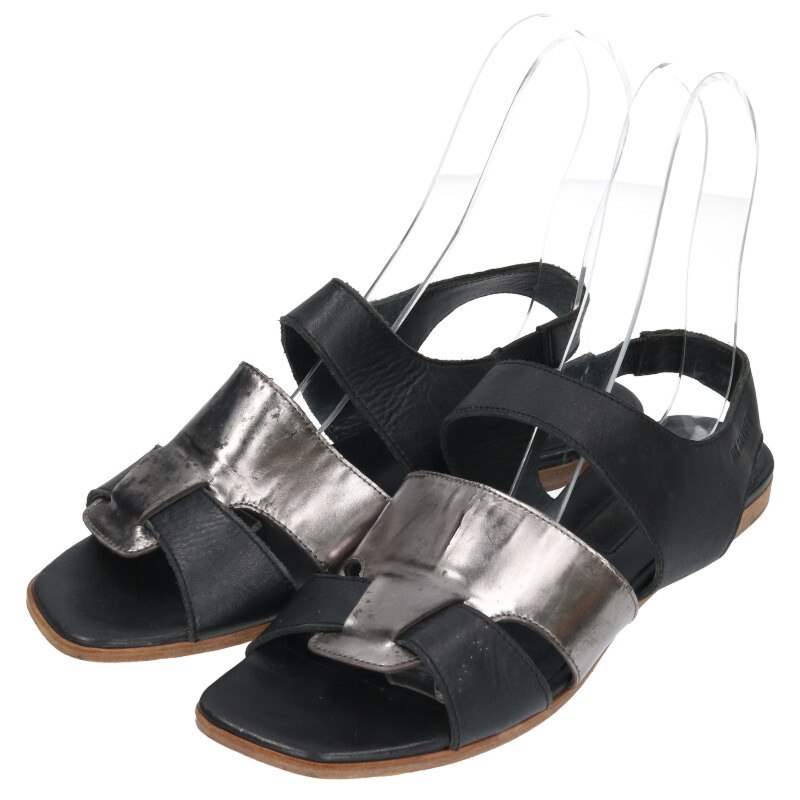 ジルサンダー JILSANDER サイズ:39 レザーサンダル(ブラック×シルバー)【128052】【BS99】【レディース】【小物】【中古】bb356#rinkan*C