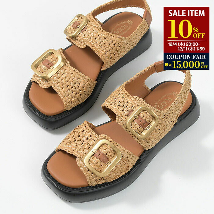 【10%OFF対象商品】TOD'S トッズ サンダル シューズ 靴 ラフィア XXW11K0FO70RDQ XXW11K0FO70RDU レディース ブラウン ベージュ 春 夏 カジュアル ベルト フラット 厚底