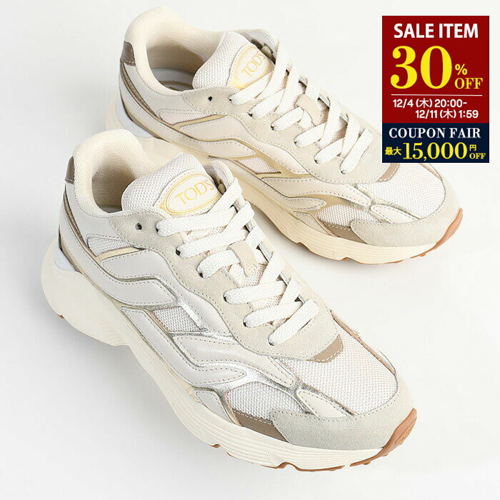 【30%OFF対象商品】TOD'S トッズ スニーカー 靴 レザー&ファブリック XXW54C0IC50T9 レディース ベージュ ホワイト バイカラー レースアップシューズ