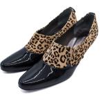 トラサルディ ブーティ レオパード シューズ ハラコ エナメル レザー ブランド 靴 日本製 レディース 23.5サイズ ブラウン TRUSSARDI