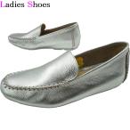 レディース ドライビングシューズ 革靴 レザー 70001S モカシン インヒール シルバー メタリック
